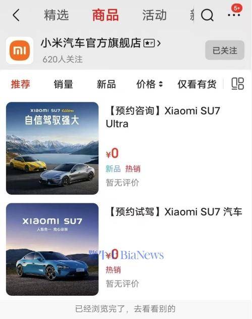 值得注意的是,小米汽车旗下的su7 ultra车型将于今日晚间正式发布。为了配合这一重要时刻,店铺已提前开启了预约渠道,让消费者能够抢先体验这款备受期待的新车。
