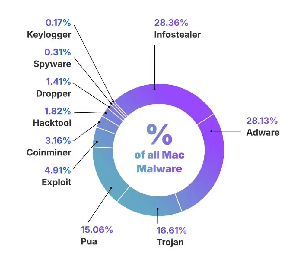 此前,jamf公司曾报告称,信息窃取类恶意软件的数量在2025年激增至28%,成为mac恶意软件家族中的主要类型。modstealer的出现无疑加剧了这一趋势,其跨平台特性和隐蔽性使得更多企业和个人面临安全风险。