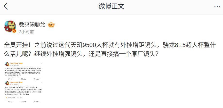 在评论区互动中,有用户调侃"蓝厂先人一步",博主回应称vivo在影像外挂领域确实具有前瞻性,并举例该品牌曾率先推出外挂镜头及2亿像素长焦方案。另一位网友关于"镜头比手机贵"的评论,则引发博主关于"手机行业影像军备竞赛"的感慨。值得注意的是,该博主当日早些时候曾就外挂配件的争议发表看法,强调这类配件主要服务于摄影爱好者,并预测未来可能出现增强音频、显示或游戏体验的外挂设备。